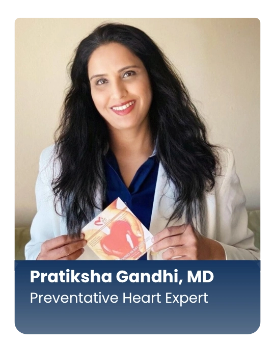 Pratiksha Gandhi, MD is a global leader in preventive cardiology who has achieved success where standard care has fallen short. She has 25 years of experience, treating over 100,000 heart patients. An award-winning author, yogi and dedicated researcher, Gandhi is recognized as one of the top 50 global women in healthcare. She is committed to treating heart disease by addressing the root causes, naturally by avoiding unnecessary surgery and meds.